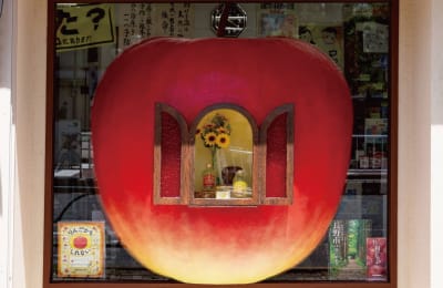 2025年5月下旬、当店の一角に長野のりんご製品を扱うコーナー 「りんごの窓TANAKA」ができました。窓から飛び出す大きなりんごは、誰もがほっこり笑顔になるフォトスポット!